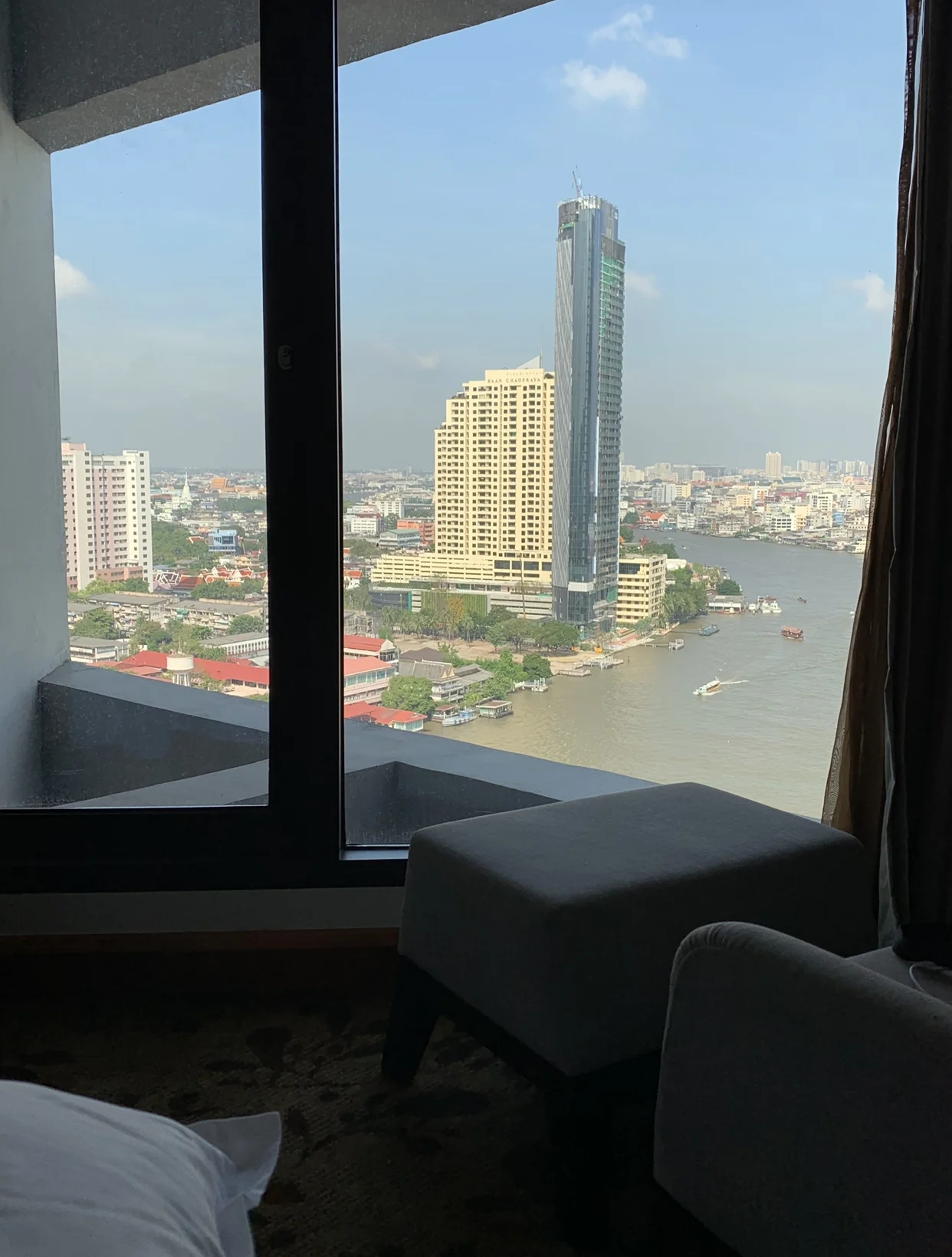 Anyway, we get in the car and we are riding along, just excited to be in Bangkok! Then we immediately hit traffic. Like…the traffic was constant and there were bouts of 20 minutes or so where' we’d be at a standstill. Once we finally got into the city, I was excited that per my Google Maps app (yes, I’m the guy who keeps my map handy while drivers are getting us to our destinations because I want to make sure they are going the right way). Good thing I did…he made a wrong turn and was taking us to a hotel that wasn’t ours! I tried to explain to him that we were staying at the Royal Orchid Sheraton Hotel & Towers. However, he couldn’t speak English so he didn’t know what I was talking about. I even pulled up a picture of the hotel and he was confused. He ended up stopping somewhere to get help from others before finally getting us to our hotel. Then, when we finally got to our room, we realized they booked us in the wrong type of room. However, I will say that the customer service at the hotel was great, so when I called back down to the front desk to let them know, they sent someone up right away to take us to our new room without us having to go back downstairs.